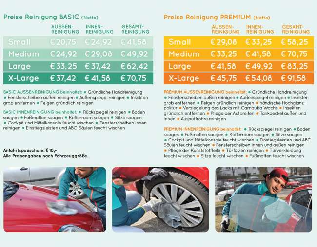 Die händische Politur und Nano-Versiegelung mit Carnauba-Wachs ist ebenfalls inkludiert – das schützt den Lack vor schädlicher UV-Strahlung und beugt rascher Neuverschmutzung vor. Qualität und persönliches Kundenservice sind uns wichtig - soziale und ökologische Nachhaltigkeit liegen uns am Herzen. Sauberes Auto – reines Gewissen.