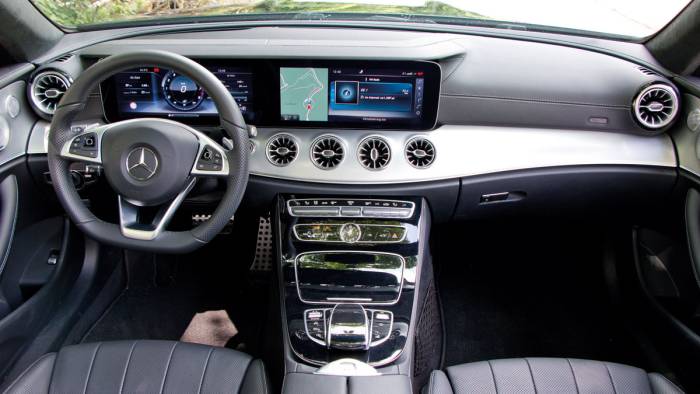 Auch von der Jahreszeit abgesehen, bestehen die Erbauer aus Stuttgart darauf, ein besonders alltagstaugliches Cabrio geschaffen zu haben. So kann der 310 beziehungsweise bei geschlossenem Verdeck 385 Liter fassende Gepäckraum des 4,83 Meter langen Zweitürers durch umlegbare hintere Sitzlehnen nach vorn erweitert werden, sodass man vermutlich sogar ein paar Carving-Ski einfädeln könnte. Ebenfalls mit allen Anforderungen spielend fertig wird die Motorisierung unseres Testwagens, welche dieselbe Souveränität an den Tag legt, mit der die Zielgruppe des Schlittens Finanzgeschäfte tätigt. Als smoother Assistent werkt die 9G-Tronic-Wandlerautomatik, die in Sachen unbemerkt perfekter Dienstbeflissenheit nach wie vor am Markt keine Konkurrenz kennt. Die schöne Farbe des Vehikels auf den Bildern heißt übrigens "smaragdgrün metallic" - merken und ankreuzen! Das tiefdunkle Grün wirkt im Schatten fast schwarz, kommt erst bei richtigem Licht zur Geltung und ist so dezent, dass manches "british racing green" dagegen mit der Brachialität von 1980er-Jahre-Frisuren aufs Auge einwirkt. Die 20-Zöller des AMG-Exterior-Pakets fügen sich in dieses Understatement nahtlos ein und haben noch eine Zusatzfunktion: Bei Unebenheiten erinnern sie den Fahrer, die Dynamikvorwahl auf "Comfort" zu stellen.