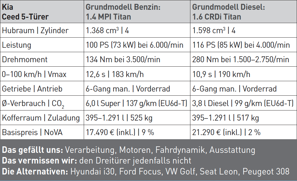 Einen großen Entwicklungssprung haben die Entwickler bei den Dieselmotoren gemacht. Die neuen, bereits nach EURO-6d-TEMP zertifizierten Aggregate überzeugen mit Werten echter Musterschüler. Beide Turbodiesel (116 und 136 PS) stoßen -egal ob als Handschalter oder mit dem neuen 7-Gang-Doppelkupplungsgetriebe -lediglich zwischen 99 und 111 Gramm CO2 pro Kilometer aus, Respekt! Die Benziner (100, 120 und 140 PS) liegen zwischen 122 und 137 Gramm. Die Preise wurden geringfügig angehoben und starten bei 17.490 Euro, der im September nachgereichte Kombi kostet 1.200 Euro mehr. Dreitürer gibt"s keinen mehr, dafür folgt Ende des Jahres ein Shooting-Brake, der ersten Zeichnungen zufolge ein echt heißes Teil werden könnte!