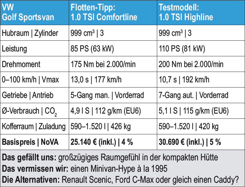 Den quirligen Dreizylinderbenziner mit immerhin 110 PS lernt man rasch mögen, auch an der Zapfsäule: Mit entsprechender Selbstbeherrschung sind Verbräuche unter sieben Liter drin, 115 Gramm CO2 sprechen ebenfalls für das Triebwerk. Ebenfalls sympathisch ist, dass der Sportsvan nicht nur die Lücke zwischen Golf und Touran schließt, sondern die Palette auch zu T-Roc und Tiguan hin ergänzt. Preislich bewegt man sich auf ähnlichem Niveau, auch wenn es bei wohlfeilen 22.890 Euro losgeht, so ist man bei Motor und Ausstattung erst um die 30.000 Euro fein eingerichtet