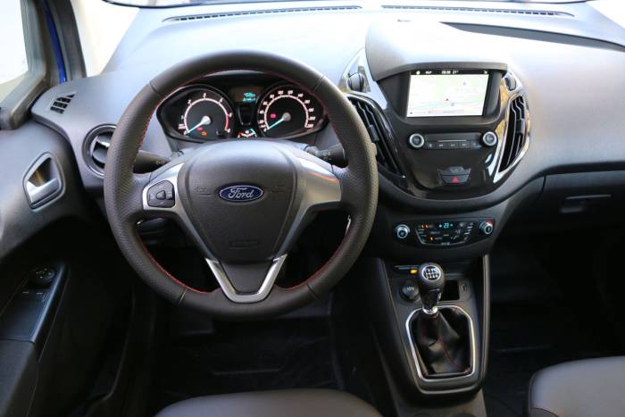Durchaus beachtlich zeigt sich die Ausstattungsvielfalt, gleich vier unterschiedliche Niveaus stehen hier zur Wahl. Die Basisversion „Ambiente“ (ab 11.450 Euro, alle Preise netto) bringt das nötigste mit, im „Trend“ (ab 13.450 Euro) kommen elektrische Fensterheber, Klimaanlage, Lederlenkrad und einiges mehr dazu. Richtig komfortabel zeigt sich dann der „Limited“, der sogar Klimaautomatik, Park-Pilot, Tempomat und Leichtmetallfelgen im Serienumfang hat. Ähnlich die Ausstattung des Transit Courier „Sport“, der mit Streifen auf der Motorhaube den Dynamiker gibt. Der jeweilige Aufpreis gegenüber der Basis liegt bei jeweils rund 3.000 Euro, los geht’s bei 14.700 Euro. Gut investiert sind die 890 Euro für das integrierte Touchscreen-Navi.