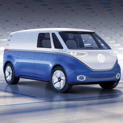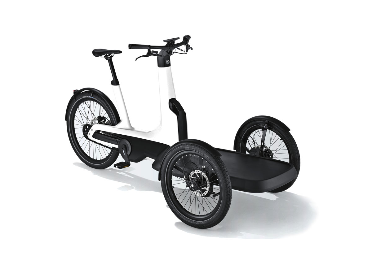 Gänzlich neues Terrain betritt Volkswagen Nutzfahrzeuge mit dem ersten elektrischen Fahrrad der Marke: dem Cargo e-Bike. Das Lastenrad-Pedelec soll ein Last-Mile-Champion sein und bereits 2019 über die VW-Händler vertrieben werden. Insgesamt können 210 Kilogramm (inkl. Fahrer) transportiert werden, wobei die serienmäßige Neigetechnik ein Herabfallen der Ladung in Kurven verhindert.