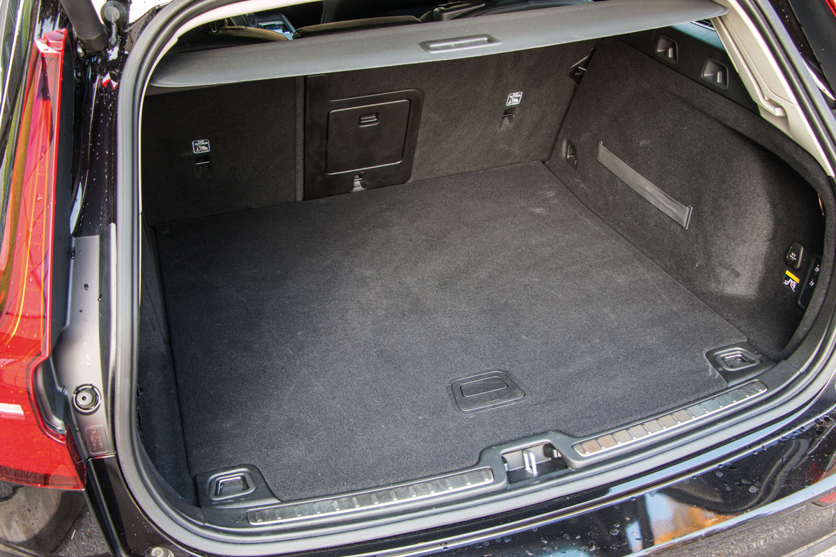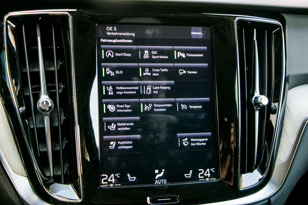 Zunächst muss man zwei Mal hinsehen, wirkt der V60 dem größeren V90 doch wie aus dem Gesicht geschnitten. Erst wenn man näher kommt, stellt man fest, dass die Dimensionen doch kompakter ausfallen. Den Optik-Check besteht der Volvo jedenfalls auf Anhieb, erst recht, da er sich wohltuend vom Rest der Klasse abhebt. Vom selbstbewussten Kühlergrill über die LED-Tagfahrleuchten im Design von Thors Hammer über die elegante Flanke bis hin zum Heckabschluss mit den Volvo-typischen, senkrechten Leuchten wirkt hier alles wie aus einem Guss. Das Design setzt sich im Innenraum fort, wo der große Touchscreen das Geschehen dominiert, ohne dabei zu aufdringlich zu sein, die Armaturen sind wenig überraschend volldigital. In der Top-Ausstattung „Inscription“ sind Annehmlichkeiten wie elektrisch verstellbare Ledersitze Serie. Wird die Schenkelauflage – die sich über die halbe Sitzfläche erstreckt – ganz ausgefahren, schränkt das leider den Sitzkomfort etwas ein, da hier ein kleiner Höhenunterschied entsteht. Kritik auf hohem Niveau, zugegeben. Das Platzangebot ist sehr in Ordnung, auch im Fond. Das Kofferraumvolumen von 529 bis 1.364 Litern bewegt sich im Klassenschnitt.