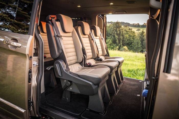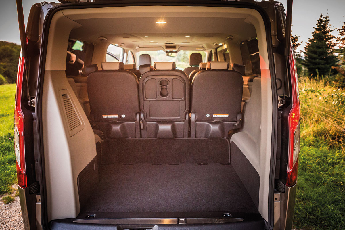 Gut für die Kollegen und eine Auszeichnung für den Wagen ist vor allem, dass die Erweiterung des Laderaums besonders einfach von der Hand geht. Die Rückenlehne der drei Einzelsitze in der dritten Reihe lassen sich nämlich mit einem Handgriff einzeln nach vorn klappen. Mit einem weiteren Zug an zwei Mascherl stellt sich der Einzelsitz nach vorn auf, was in wenigen Sekunden den nutzbaren Stauraum deutlich vergrößert. Und da hat dann schon mal ein neuer Zweisitzer fürs Vorzimmer Platz. Das einfache Umlegen der Rücksitze kaschiert darüber hinaus ein Manko, denn der Custom verfügt nicht über ein Sitzschienensystem, mit man die Sitze längs verrücken könnte.