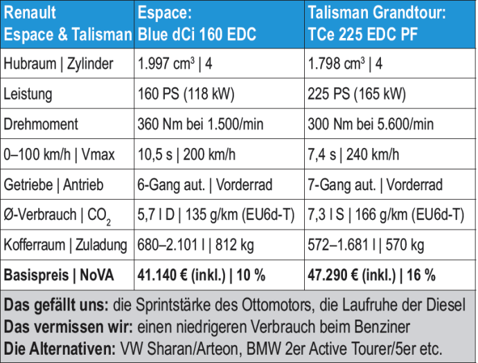 Espace und Talisman wurden neue Motoren spendiert: Neben einem 225 PS starken Turbobenziner sind zwei neue Selbstzünder-Varianten mit 160 und 200 PS erhältlich.