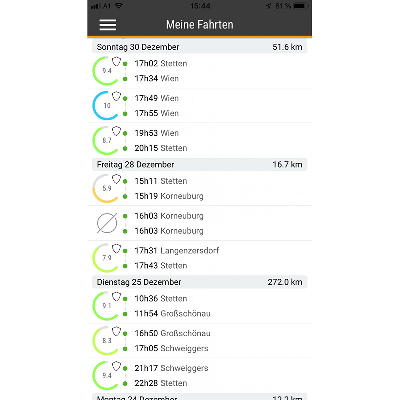Denn wer Spritverbrauch und Schäden analysiert, der wird rasch feststellen, dass hier in so gut wie allen Unternehmen großes Einsparungspotenzial besteht. Mit dem Fitness-Tracker von fleet.tech hat der Fuhrparkleiter gleich mehrere Möglichkeiten. Zum einen - und das haben wir bereits in den ersten Tagen festgestellt - kommt es zu einem internen Wettbewerb zwischen den Fahrern. Denn jeder sieht auf dem eigenen Smartphone zwei Ranglisten, eine nach Effizienz und eine nach Sicherheit. Und automatisch wird dadurch der Ansporn geweckt, möglichst gut platziert zu sein. Zusätzlich können noch Prämien ausgelobt werden. Für die perfekte Fahrt werden zehn Punkte vergeben, wer zum Beispiel zu stark beschleunigt, zu flott in Kurven fährt oder zu stark bremst, bekommt Abzüge und kann sich auf der Karte auch ansehen, wo er die Punkte liegen hat lassen. Der sogenannte "Beacon" muss dabei lediglich sichtbar im Fahrzeug platziert und einmalig mit der App am Smartphone gekoppelt werden, ab dann funktioniert die Aufzeichnung automatisch.
