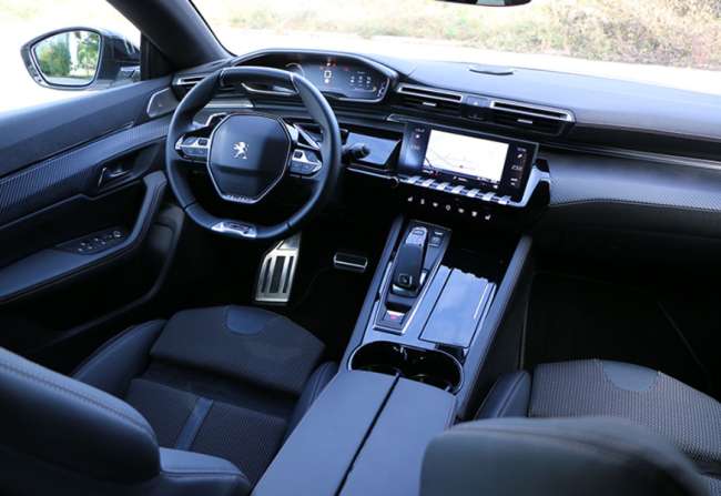 Alles gut und schön, werden Sie als Fuhrparkverantwortlicher jetzt vielleicht sagen, aber wie schaut's denn mit den harten Fakten aus? Berechtigte Frage, wir nehmen also zunächst einmal Platz im großen Peugeot. Der fällt -nicht zuletzt aufgrund der relativ breiten Mittelkonsole -gar nicht so üppig aus, man fühlt sich eher wie in einem Anzug mit Slimfit-Label, ohne aber wirklich Platzangst leiden zu müssen. Das Lenkrad ist -wie mittlerweile in fast allen Peugeot-Modellen -extrem klein. Die Idee dahinter: Man möchte sich dadurch ein Head-up-Display sparen, da die digitalen Armaturen nicht unter, sondernüber dem kleinen Lenkradkranz erscheinen.
