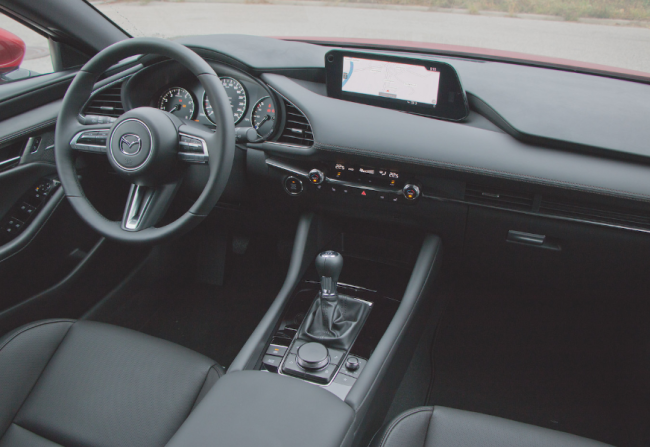 Der Druck auf den Startknopf offenbart zunächst eine tolle Laufruhe, selbst auf den ersten Metern könnte man meinen, in einem Elektroauto zu sitzen, so dezent bleibt der Vierzylinder im Hintergrund. Zudem beeindruckt die niedrige Drehzahl, mit der sich der Mazda3 bewegen lässt. In der Stadt sind 50 km/h im 5. oder gar 6. Gang bei knapp über 1.000 U/min kein Problem. Wer dann allerdings Power möchte, muss fleißig runterschalten, schließlich gibt's ja keinen Turbo. Und so fühlen sich die 180 PS auch nicht ganz so spritzig an, zumindest nicht im unteren Drehzahlbereich.