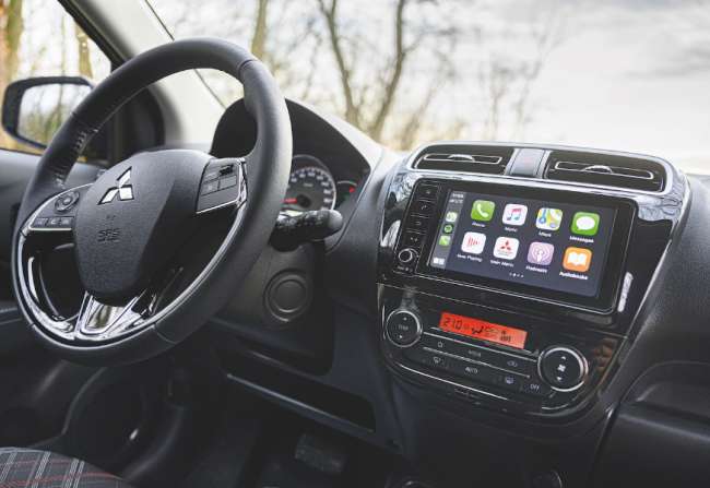 Fast schon edel steht der Space Star - es handelt sich um ein sogenanntes Major Facelift der zweiten Generation - vor uns. 15 Zoll große Alufelgen und abgedunkelte Scheiben hinten sowie die LED-Rückleuchten sorgen für den großen Auftritt. Auch im Cockpit bemüht er sich um einen angenehmen Alltag für uns: Alle Fenster sind elektrisch zu bedienen, der Fahrersitz lässt sich in der Höhe verstellen, wir greifen auf Leder, wennwir schalten und lenken, dazu lässt sich die Musik vom Lenkrad aus steuern, Apple Car-Play und Android Auto stehen ebenfalls bereit. Sogar an ein Navi wurde gedacht und an kalten Tagen freuen wir uns über einen warmen, nun ja, über die Sitzheizung eben. Wer von Musikstreaming nichts hält, schätzt den CD/DVD-Player, der ganz oldschool-mäßig seinen Weg in den Space Star Invite gefunden hat.