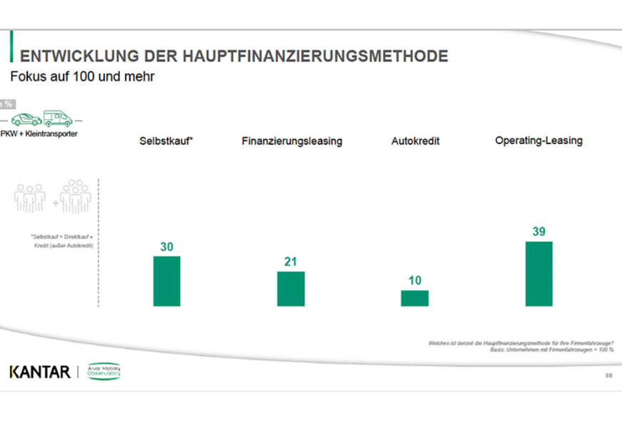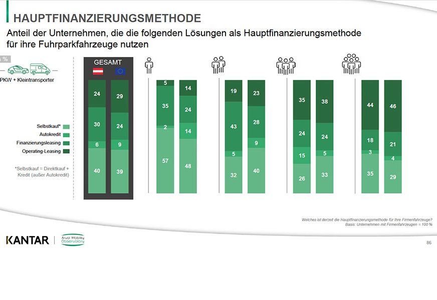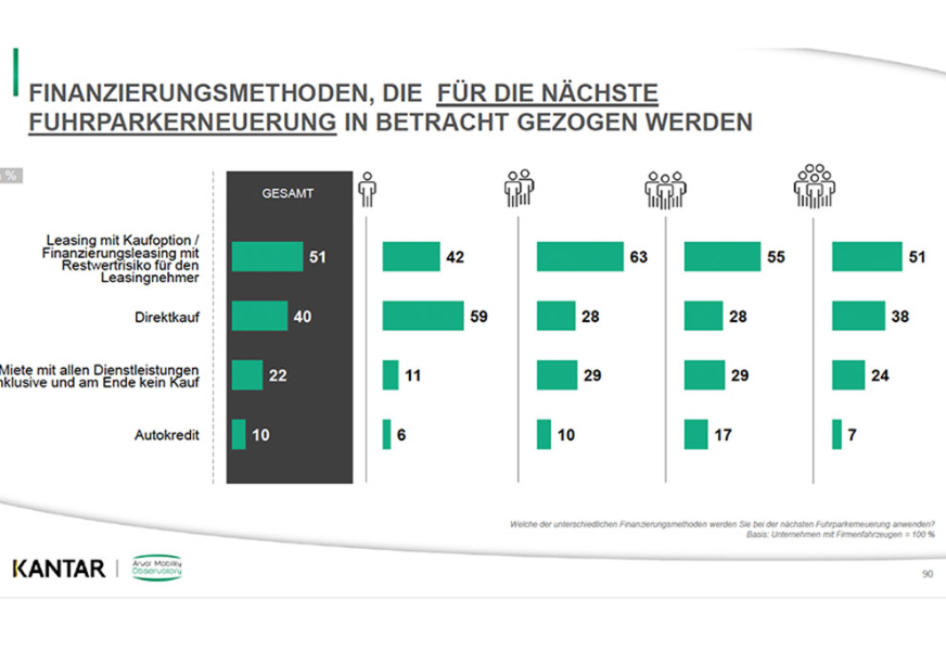Die detaillierten Ergebnisse finden Sie in unserer Bildergalerie, Brigitte Becksteiner-Bichler, Commercial Director Arval Austria und Expertin für das Fleet Barometer, fasst die Trends zusammen: „In Österreich finanzieren die Firmen traditionell ihre Autos selbst. Laut Fleet Barometer sind es (noch) 40 Prozent. Schon in der Studie hat sich ein Trend Richtung Leasing abgezeichnet: Finanzierungs-Leasing ist die am zweithäufigsten genutzte Finanzierungsmethode, während Operating-Leasing 24 Prozent der Flotten finanziert. Aktuell geht es darum, Unternehmen kurzfristig Erleichterung in Bezug auf ihre Liquidität zu schaffen.“