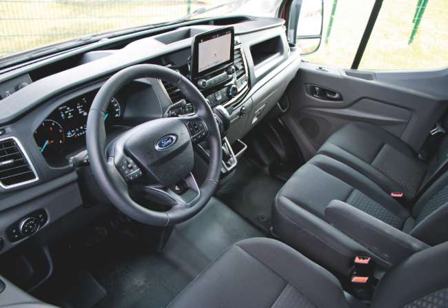 Ein Navi haben beide verbaut, der Punkt geht hier aber an den Ford, der nicht nur mit größerem Display, sondern auch mit der besseren Bedienung aufwartet. Wer den mittleren der drei Sitze nicht benötigt, kann in beiden Fahrzeugen aus der Lehne eine Ablage ausklappen, robuster wirkt das beim Italiener. Zusätzlichen Stauraum gibt es übrigens bei beiden unter dem Beifahrersitz. Die bei Fahrzeugen dieser Größenordnung dringend empfehlenswerte Rückfahrkamera ist beim Ford im Navi-Screen und beim Iveco im Rückspiegel integriert. Eine Bluetooth-Schnittstelle sowie USB-Lademöglichkeiten für Smartphones sind mittlerweile selbstverständlich.