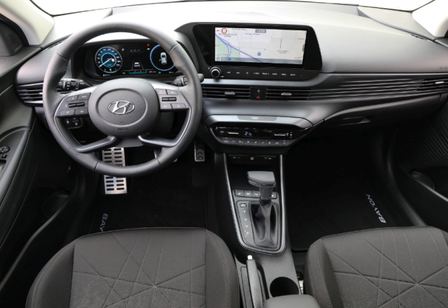 Und das macht sich vor allem im Kofferraum bemerkbar. Mit 411 bis 1.205 Litern schlägt der Bayon den Kona (374 bis 1.156 Liter) und auch im Fond ist etwas mehr Platz. Erstaunlich: Der Autor dieser Zeilen -192 Zentimeter groß -fand knapp, aber doch "hinter sich" im Fond noch Platz, stark für ein Auto in diesem Segment. Der Innenraum weiß auch optisch zu gefallen, zwar kommt man an Hartplastik in der Preisklasse nicht herum, das ist aber sauber verarbeitet. Hyundai-typisch top ist die Ausstattung, erst recht im von uns gefahrenen Topmodell "Trend Line", das LED-Scheinwerfer, 17-Zoll-Alufelgen, Keyless-System, Regensensor, digitale Armaturen, Rückfahrkamera und vieles mehr mitbringt. Erwähnenswert ist das bereits ab dem Niveau "i-Line plus" serienmäßige 8-Zoll-Farbdisplay, das die kabellose Smartphone-Integration von Apple CarPlay und Android Auto ermöglicht und damit das im Paket 1.500 Euro teure Navi obsolet macht. Apropos Paket, aufbauend auf die Trend-Line-Ausstattung gibt es noch ein Technik-Paket für 1.090 Euro, das unter anderem Parksensoren vorn, Sitzheizung hinten und einen Toter-Winkel-Warner beinhaltet.
