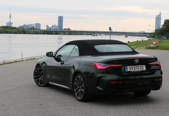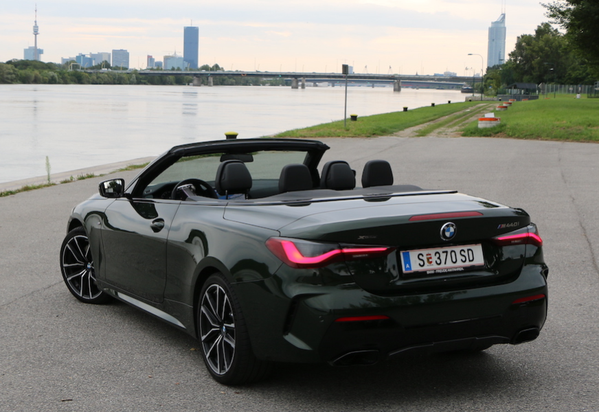 Und nicht nur ums Herz, neben der Sitzheizung sorgt auch ein dreistufiger, in die Kopfstütze integrierter Nackenföhn dafür, dass man dem Cabriovergnügen auch bei Temperaturen um die 20 Grad oder darunter fröhnen kann, ohne die Winterjacke samt Schal anzulegen. Und selbst im Winter, wenn das Dach ja im Regelfall geschlossen bleibt, findet man im M440i dank xDrive einen guten Begleiter. Allradantrieb sorgt dafür, dass man sich auch auf Schnee und Eis nicht blamiert, die dick gefütterte Stoffmütze erlaubt nicht nur ein schlankeres Heck, sondern ist gut gedämmt gegen Kälte und Geräusche, geschlossen wähnt man sich beinahe in einem Coupé.
