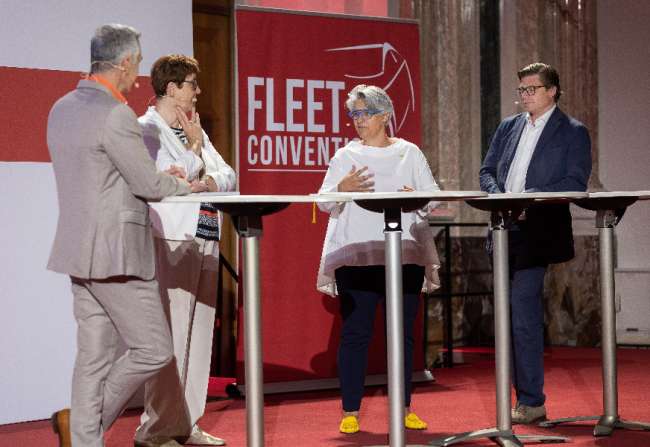 Bei der Podiumsdiskussion auf der FLEET Convention 2022 betonte DI Theresia Vogel (GF Klima- und Energiefonds), dass Förderungen für Fuhrparks zwar wichtig seien, ein gewisses Mindset aber grundsätzlich vorhanden sein muss. Entsprechend werde nicht nur die Anschaffung fertiger Technologien gefördert. Marcella Kral (ÖAMTC E-Mobilitäts-Expertin) sieht Förderungen als Geburtshilfe und freut sich über Leuchtturmprojekte wie den zu 100 Prozent CO2-neutralen Postfuhrpark in Graz. Als Sprecher des Arbeitskreises der Automobilimporteure wies Dr. Christian Pesau darauf hin, dass die Förderungen für Nutzfahrzeuge erst nächstes Jahr entschieden werden und dass Firmen bis dahin entsprechend keine Kaufentscheidungen treffen. Eine zeitgerechtere Abklärung wäre wünschenswert gewesen.