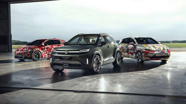 Eine übergeordnete Strategie beherrscht derzeit Wolfsburg: Ein VW muss wieder wie ein VW aussehen. Und auch so heißen. Prominentestes Beispiel ist der fast serienreife ID. Polo. Basierend auf der Studie ID. 2all, soll der kleine Fünftürer 2026 starten und etwa vier Meter lang sein. Es wird auch eine leistungsstarke GTI-Version geben, genauso wie ein SUV, das in Form der Studie ID. Cross Concept gleich nebenan ausgestellt war. Ebenfalls mit Frontmotor und Frontantrieb bestückt, bleibt er mit 4,2 Metern Länge angenehm kompakt, bietet mit 450 Litern Laderaum genügend Platz, und der 25-Liter-Frunk eignet sich optimal zum Verstauen von Ladekabeln. Technische Daten: 211 PS, 420 Kilometer WLTP-Reichweite. Wohl erst 2027 im Handel.