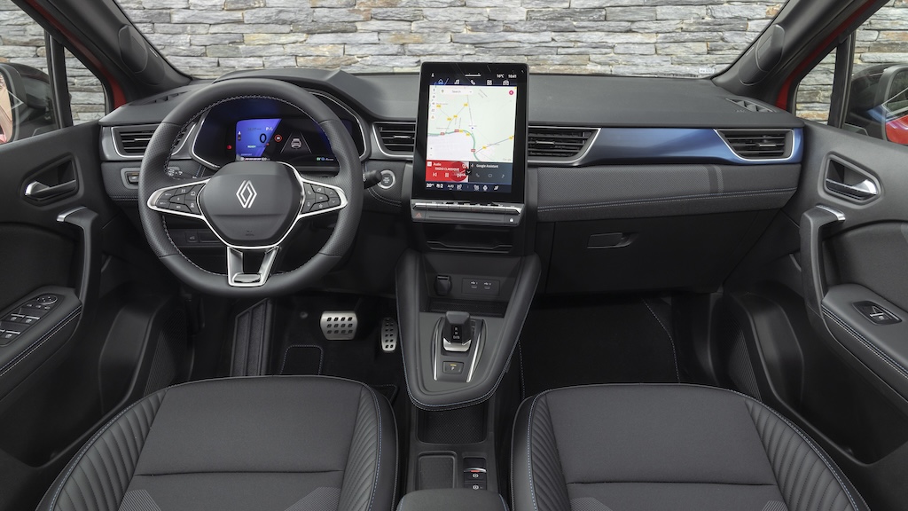 Hier kommt nun ein 1,8-Liter-Saugbenziner zum Einsatz, der im Vergleich zum vorherigen 1600er mit 110 PS 15 Pferde mehr hat und 172 Newtonmeter Drehmoment stemmt. Mit den zwei E-Motoren ergibt das 160 statt 140 System-PS, was dank der niedertourigeren Ausführung neun Prozent weniger CO2 im regulären Fahrbetrieb bringen soll. Dazu gibt Renault eine kombinierte Reichweite von 1.100 Kilometern an, dank der tatkräftigen Unterstützung des 1,4 kWh großen Akkus, der kurze Strecken – vornehmlich im Ortsgebiet – praktisch alleine bewältigt.