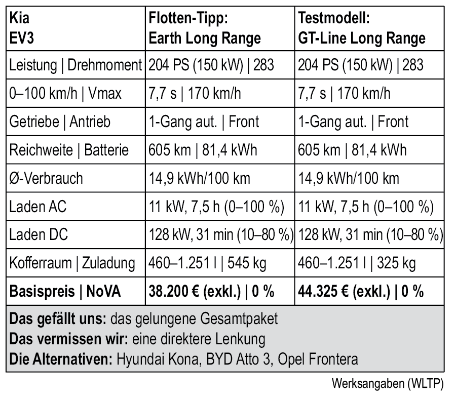 Der Kia EV3 bietet von allem genug und von nichts zu wenig, dazu eine allgemein verträgliche Fahrwerkabstimmung. Im Test mit der größeren Batterie mit 81,4 kWh.