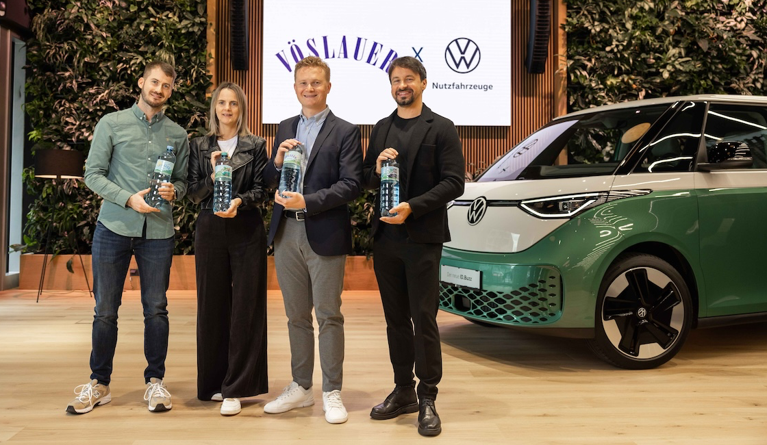 Auf 1,5l rePET Promotion-Gebinden des Mineralwasserproduzenten werden zweiwöchige Roadtrips mit dem vollelektrischen VW ID. Buzz verlost.